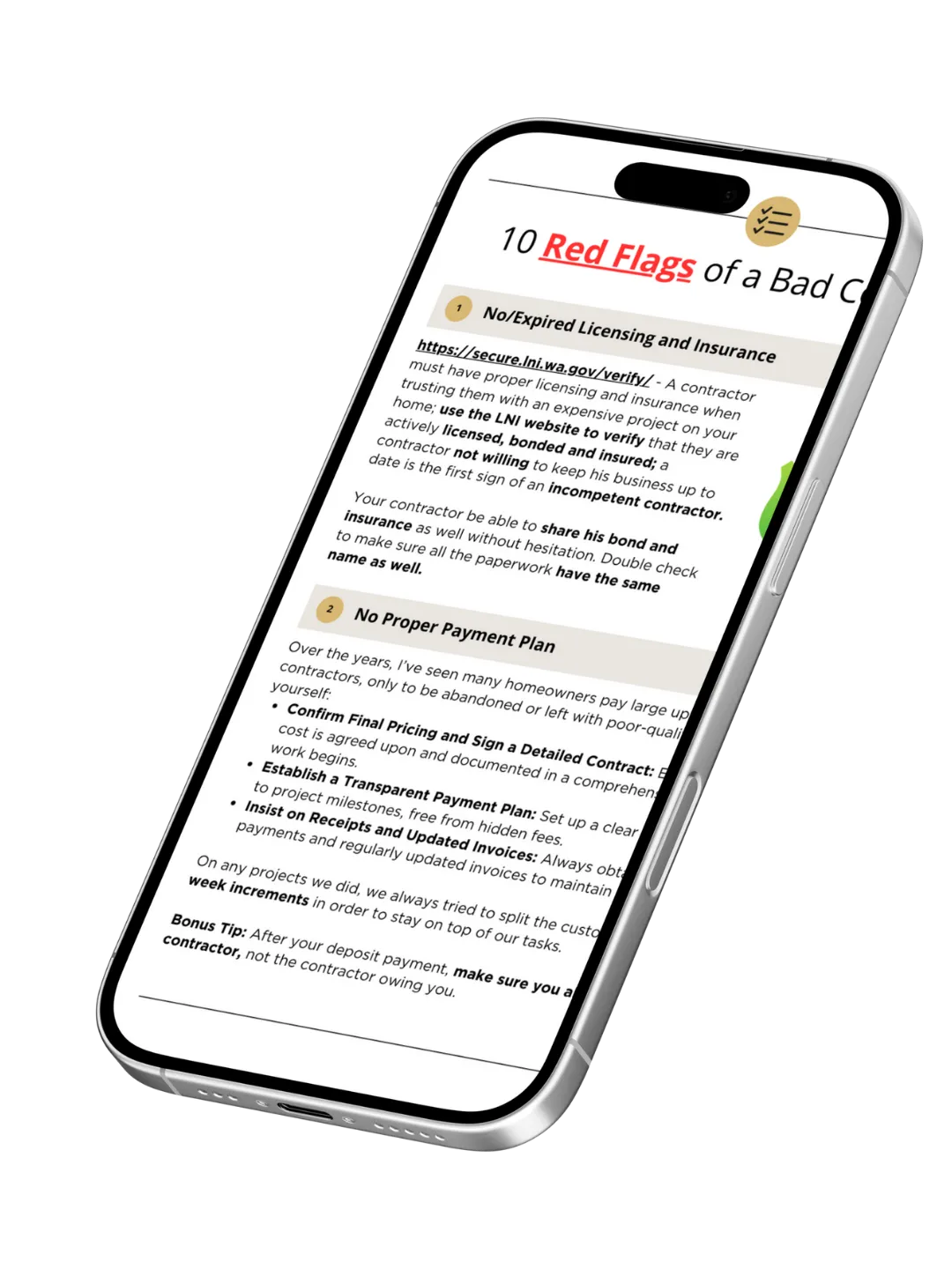 FRee Contractor Checklist for Moses lake homeowners